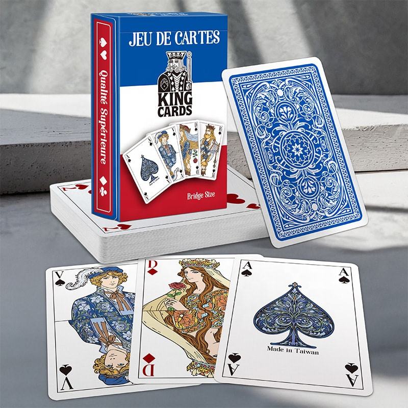 Cartes à Jouer KING CARDS en Papier Lin Premium - Index Français Moderne, Usage Familial, Revêtement à Base d'Eau