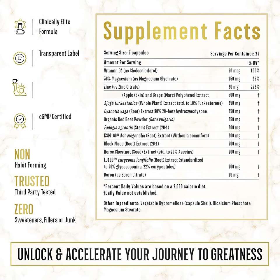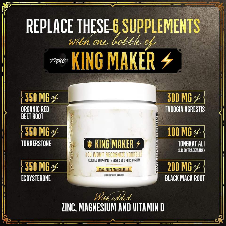 KING MAKER Complément alimentaire 13-en-1 pour hommes, 120 capsules, pour stimuler l'endurance, la croissance musculaire maigre et la récupération chez les adultes