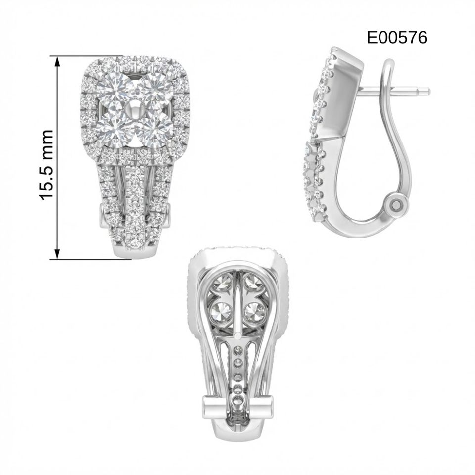 KING O KING Boucles d'oreilles créoles pour femme en or blanc massif 18 carats de haute qualité, avec diamant taille brillant 1,05 carat, sans nickel, cadeau pour fête