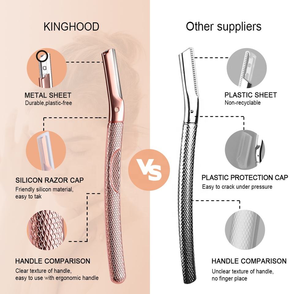 KINGHOOD Tondeuse à sourcils réutilisable avec logo personnalisé pour femmes Rasoir rose pour le visage