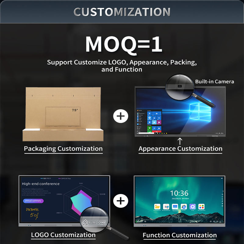 KINGONE 65 75 86 98 110 pouces 4K Tableau blanc interactif tout-en-un Tableau numérique intelligent Écran tactile Tableau d'enseignement pour salle de classe