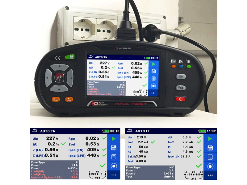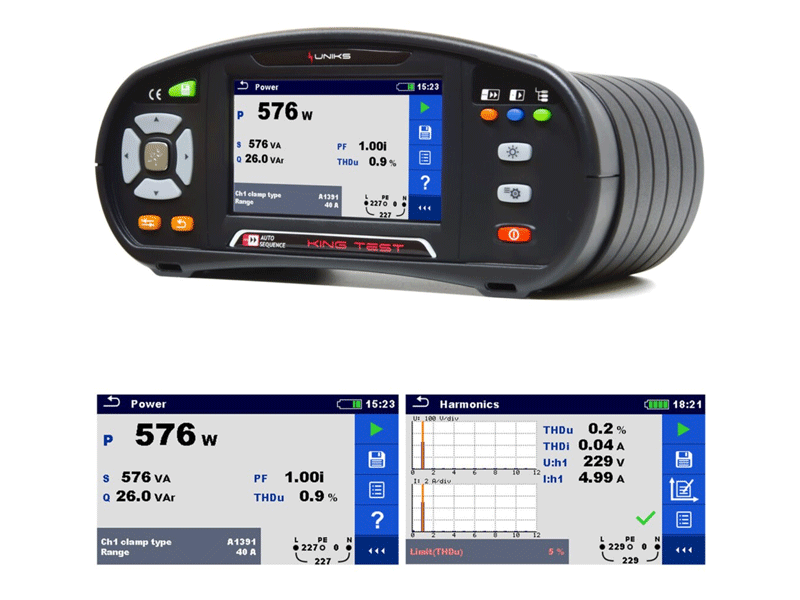 UNIKS KINGTEST Multifonction écran tactile teste et certifie les systèmes électriques selon CEI 64-8 et tests sur EV.