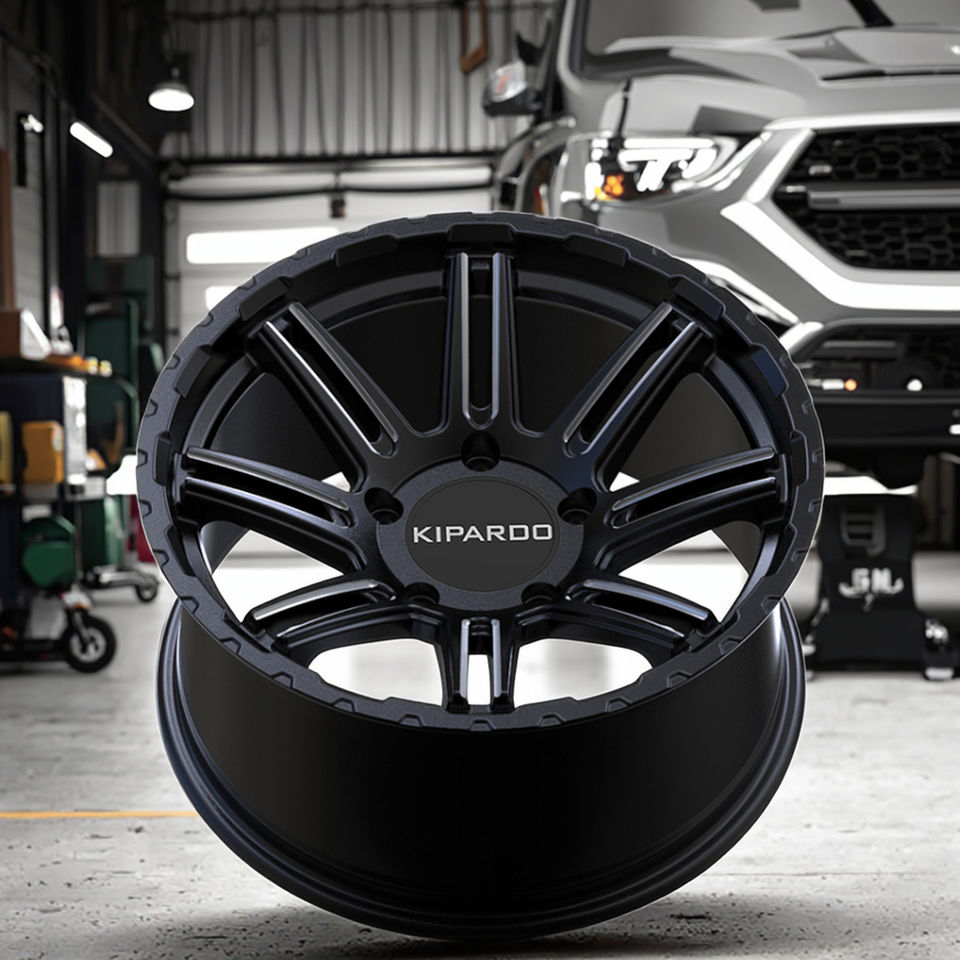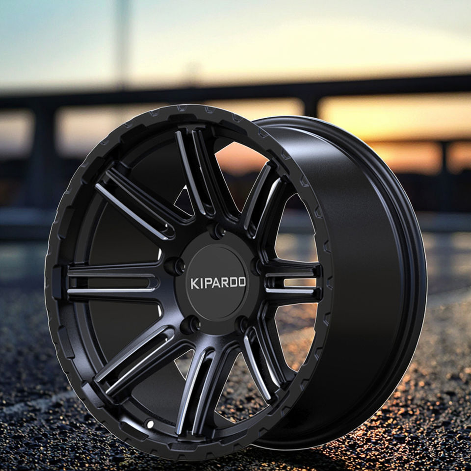 KIPARDO Jantes à lèvre en maille noire pour voiture tout-terrain, Jantes en alliage pour Suv 5 Lug Stud 5x139.7 4x4 Offroad Car pour Toyota Land Cruiser Hummer H2