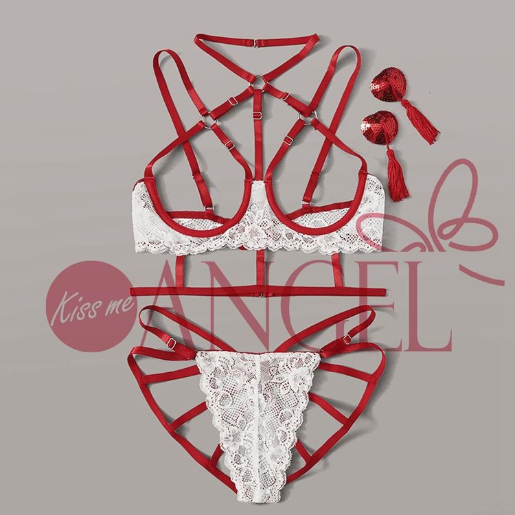 Package:One Set = Top + G-string+Breast Sticker(With Underwire)