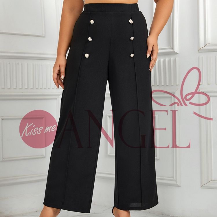 KISS ME ANGEL Spring and Autumn Large Size Double Breasted Loose Straight Leg Pants Casual Wide-leg Pants Women's Commute