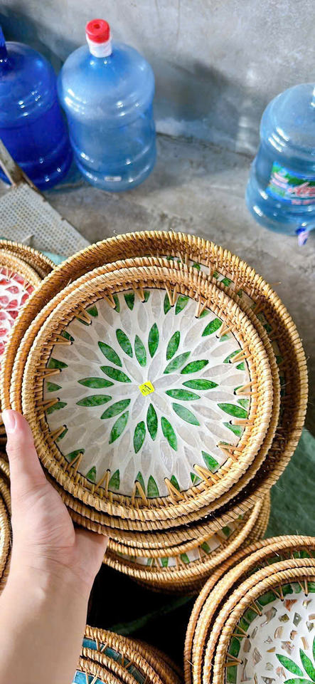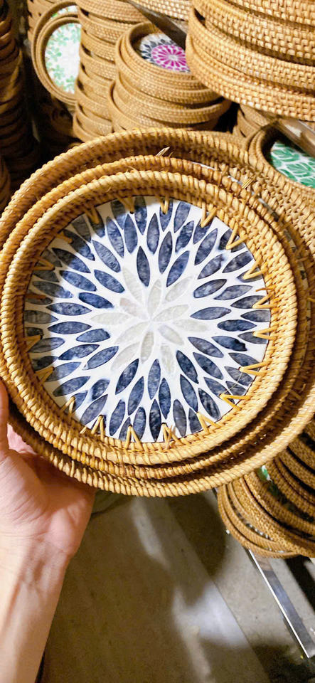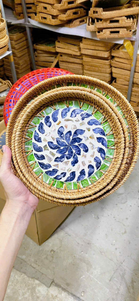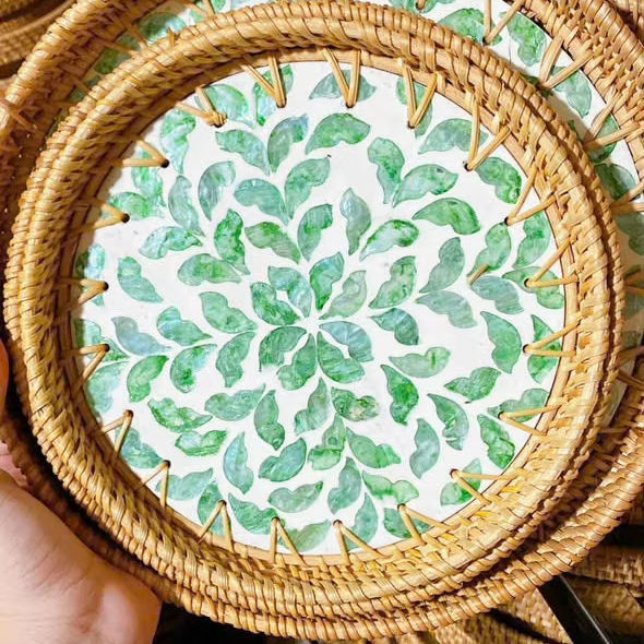 Accessoires de cuisine, plateaux de service en rotin ronds avec poignées, forme et couleur personnalisables, utilisation à domicile, hôtel, restaurant, VGreen Art