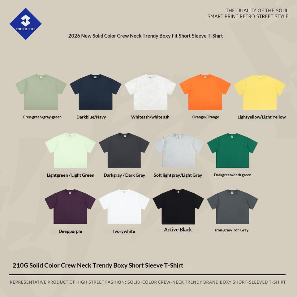KITE T-shirt Homme Printemps/Été 2026 210G Uni Vintage Américain Rétro Manches Courtes Coupe Boxy Vierge Respirant Antibactérien pour Adolescent