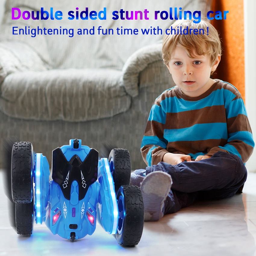 KK Voiture télécommandée double face à 4 canaux de haute qualité pour enfants, feux clignotants, portée de 40 à 50m, prêts à l'emploi.