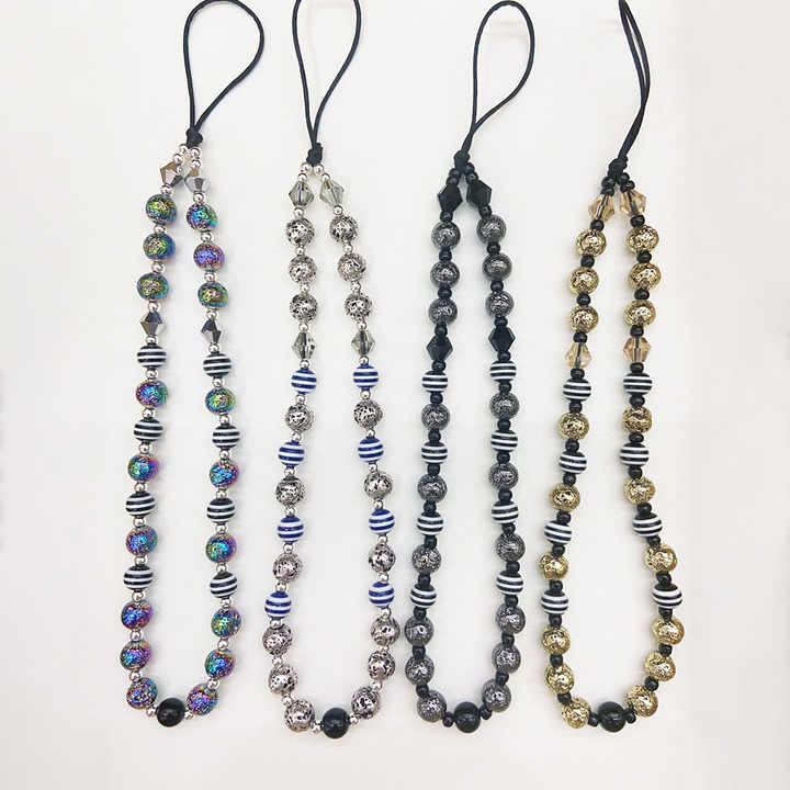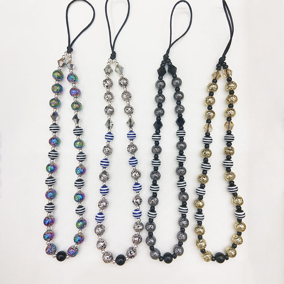 Étui de téléphone portable tendance en résine et pierre volcanique, plaqué or 18 carats, avec chaîne en métal colorée 32cm+5cm, design original fait main KKBEAD