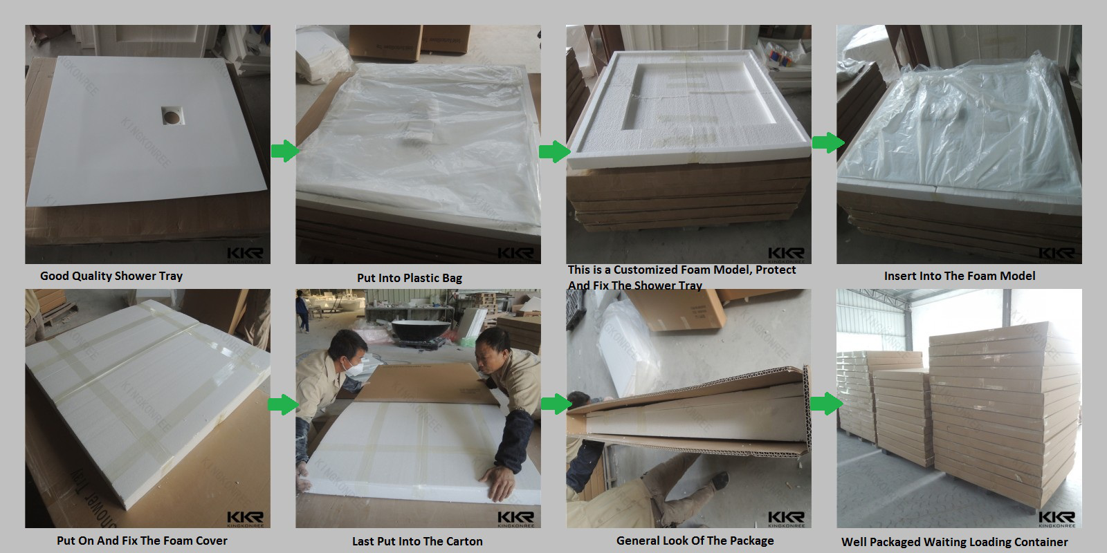 KKR Base de salle de bain en pierre artificielle antidérapante, plateau de douche à surface solide en résine acrylique blanche