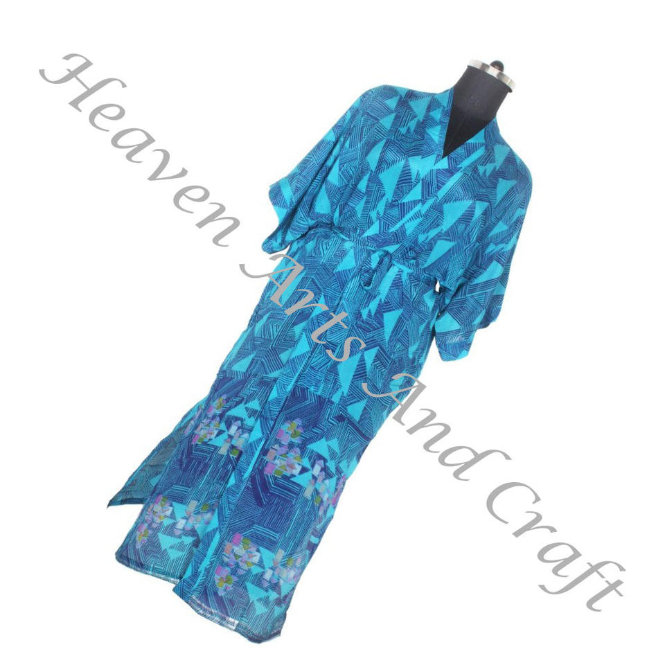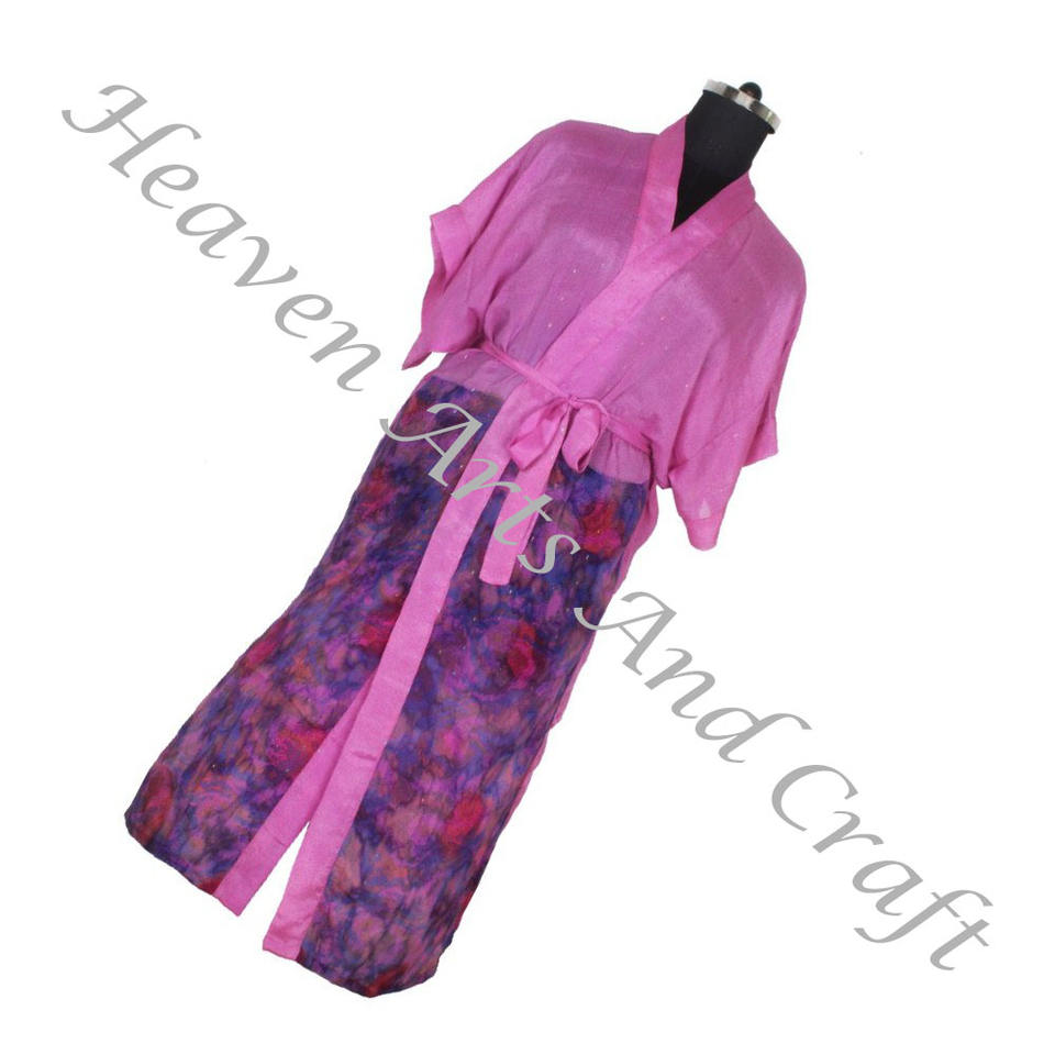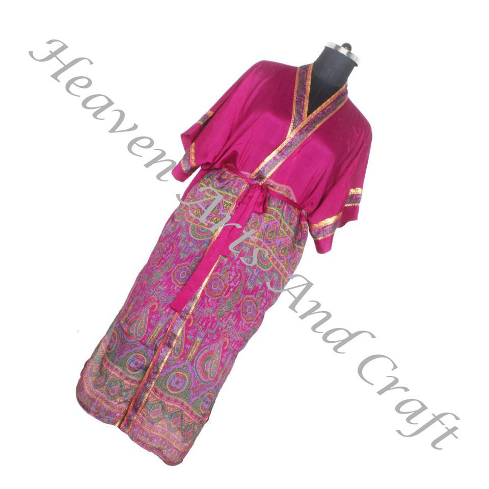 KL005 Beach Vintage Sari Kimono Long Ladies Vintage Women Wear Bathrobe Jacket Recycled Silk Sari Fabric Nightwear Robe Vintage