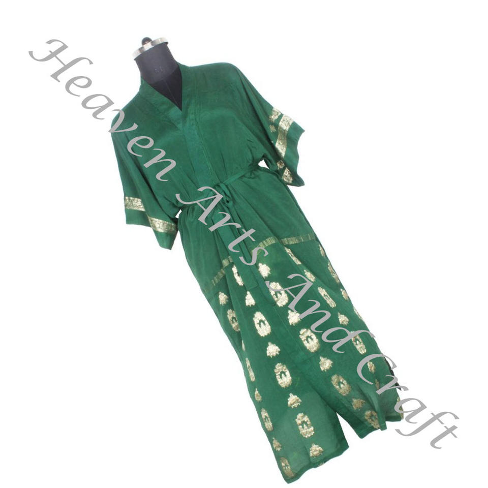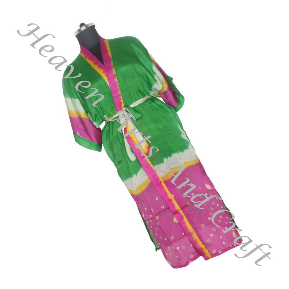 KL011 Beautiful Vintage Silk Sari Floral Jacket Bohemian Winter Long Handmade Jacket With Belt Closer Vintage Sari Kimono Long
