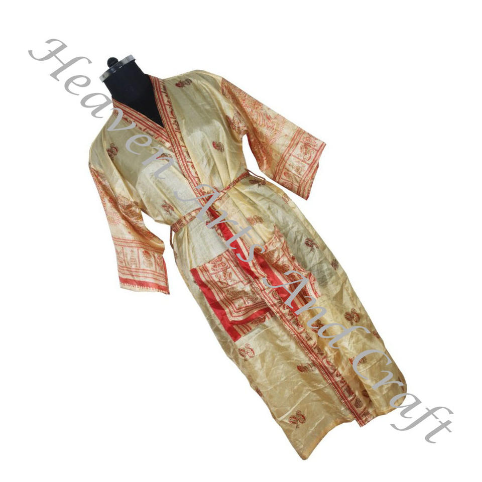 KL018 Vintage Silk Sari Long Sleeve Vintage Sari Kimono Long Boho Dressing Gown Vintage Kimono Long Bridesmaid Dress Christmas
