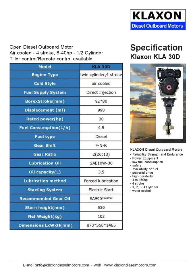 KLAXON KLA30D High Power Jet Motor Excellent Lightweight 30 Horse Power Open Air Cooled Diesel Outboard Available New or Used