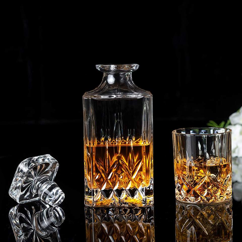 KLP Whiskey Decanter Set with 2 Old Fashioned Whisky Glasses for Liquor Scotch Bourbon or Wine - Irish Cut