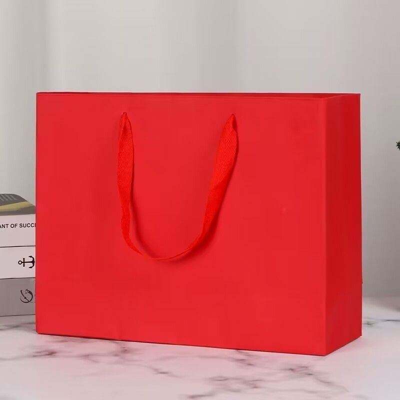25 sacs en papier scellés en plastique 16x8x21cm petits emballages cadeaux rouges sacs à provisions en gros sacs en papier rouges 16x8x21cm petits cadeaux w
