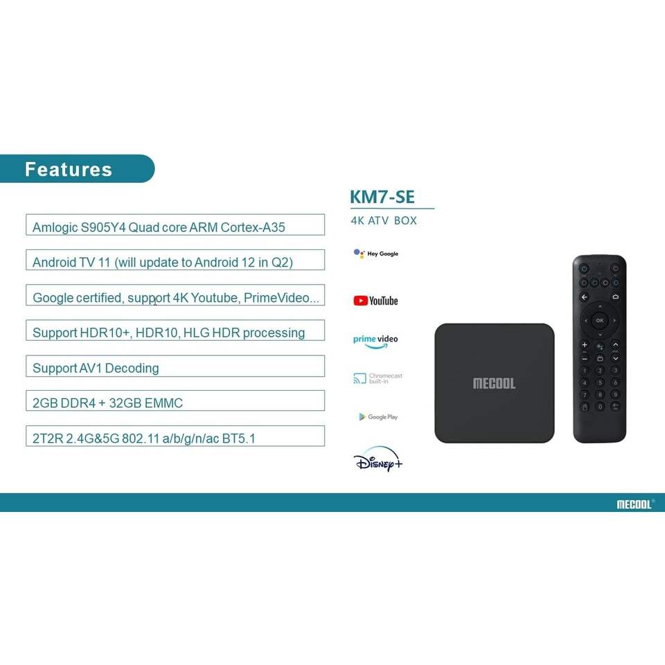 KM7 32GB Quad Core Amlogic S905Y4 Android 11.0 TV Box ATV Certificate 4K LED HDTV Smart TV for Bluetooth WiFi 2.4G/5.8Ghz BT5.1