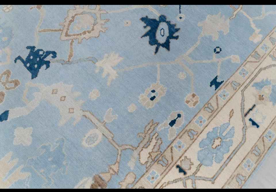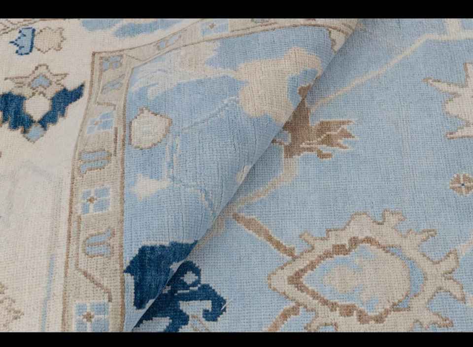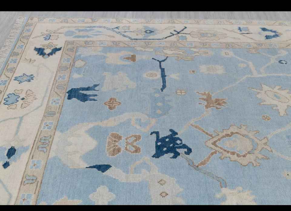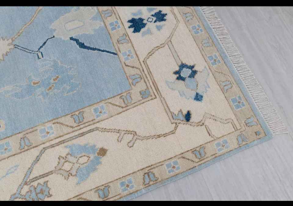NOEUDS RUG bleu crème haute qualité noué à la main moderne Oushak tapis 5x7 pour salon hôtels chambre à coucher tapis brodé