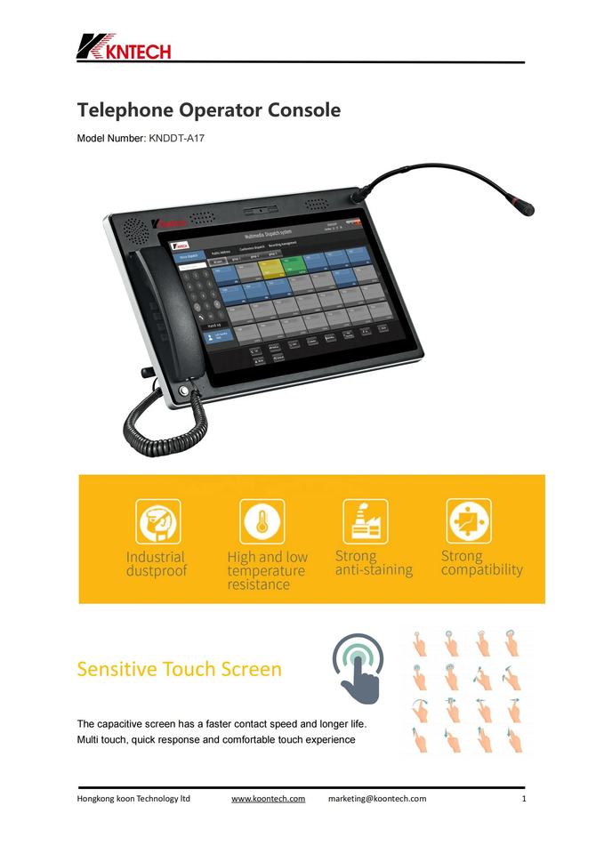 KNTECH Salle de contrôle Téléphone A17 Identification de l'appelant Téléphone sensible 17.3 pouces Écran tactile Station de répartition Col de cygne Microphone