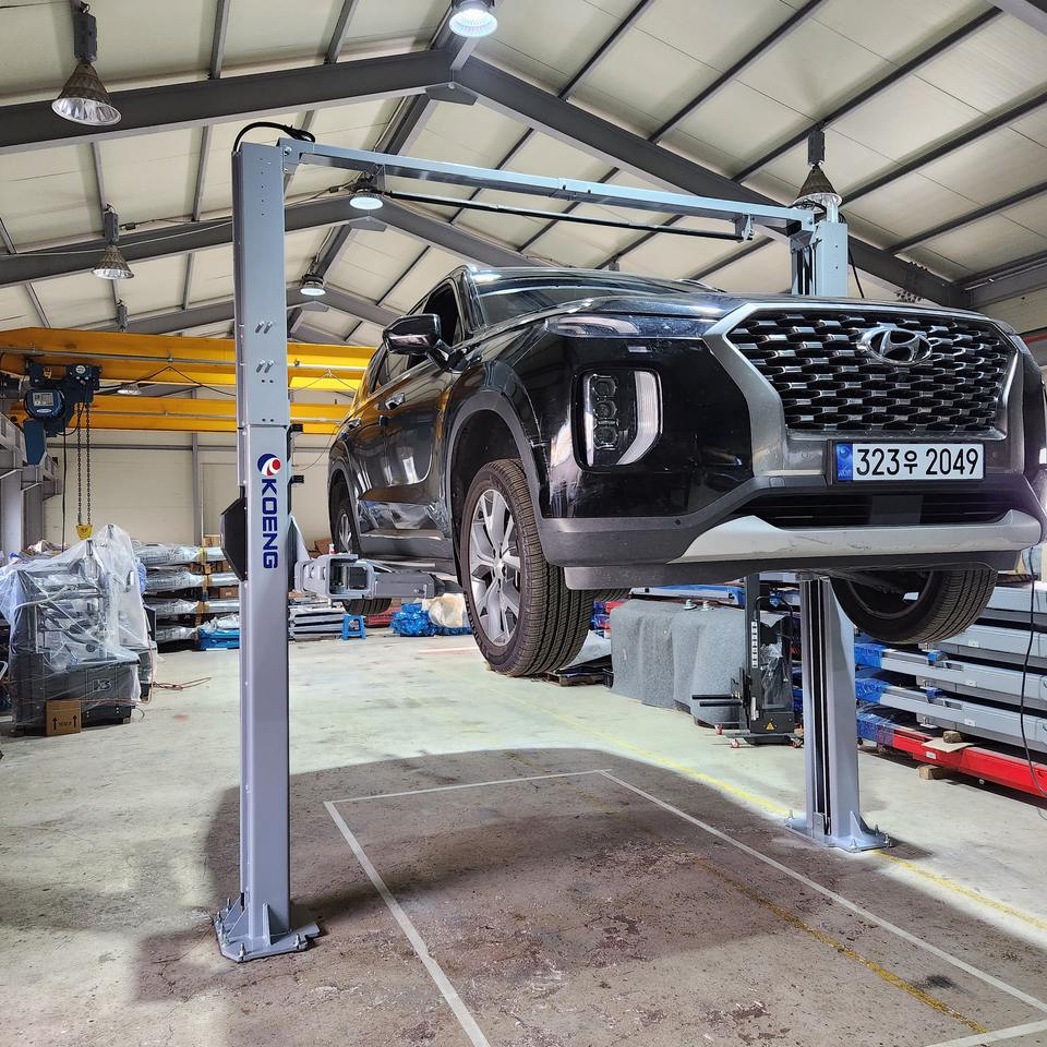 Lève-voiture à deux poteaux KOENG KLT-5E pour véhicules électriques, entraînement hydraulique, capacité de 5 tonnes, hauteur de levage de 76,4 pouces