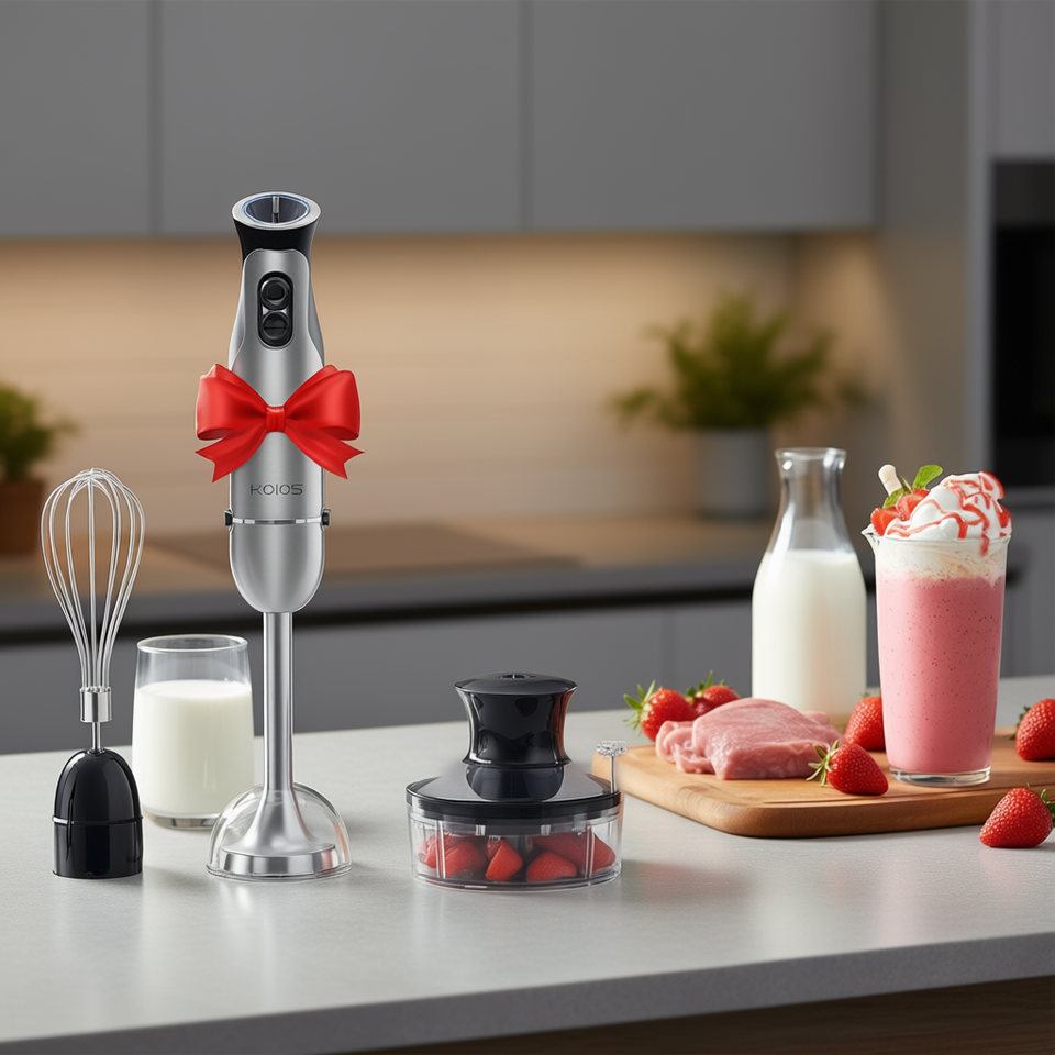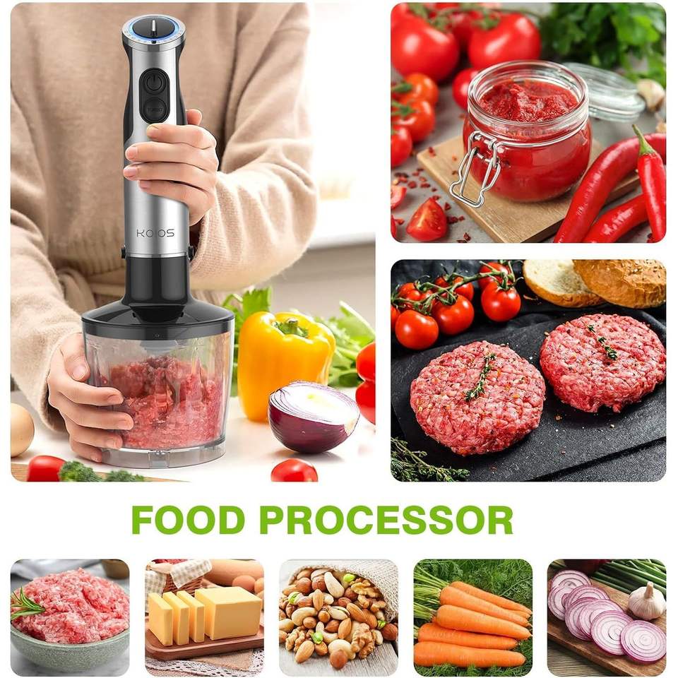 Mixeur Plongeant 5-en-1 KOIOS avec Axe en Acier Inoxydable, 12 Vitesses, Commande par Bouton Poussoir, Prise Type UK