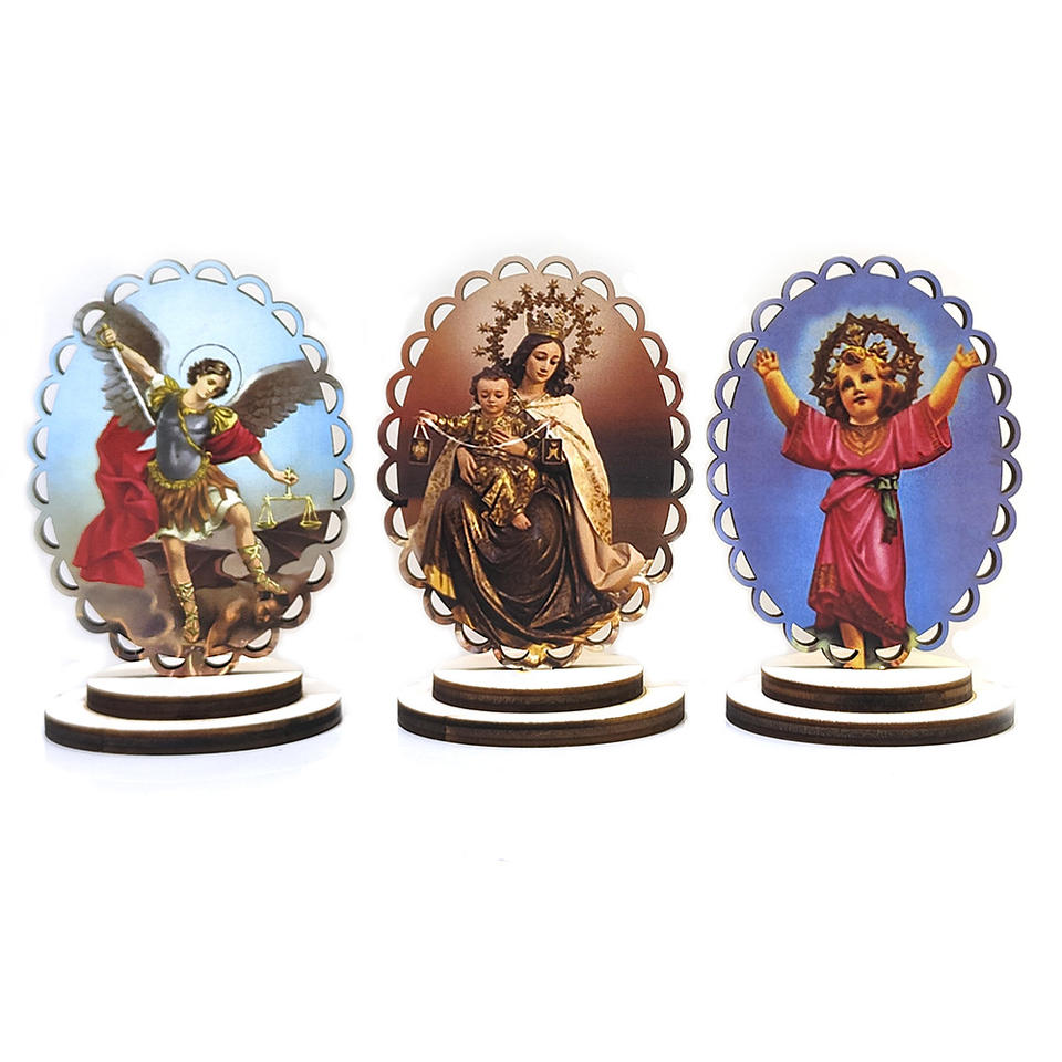 KOMI 2024 nouveau 9cm européen en bois massif couleur creuse en bois ovale dentelle debout icône voyage voiture décoration de la maison