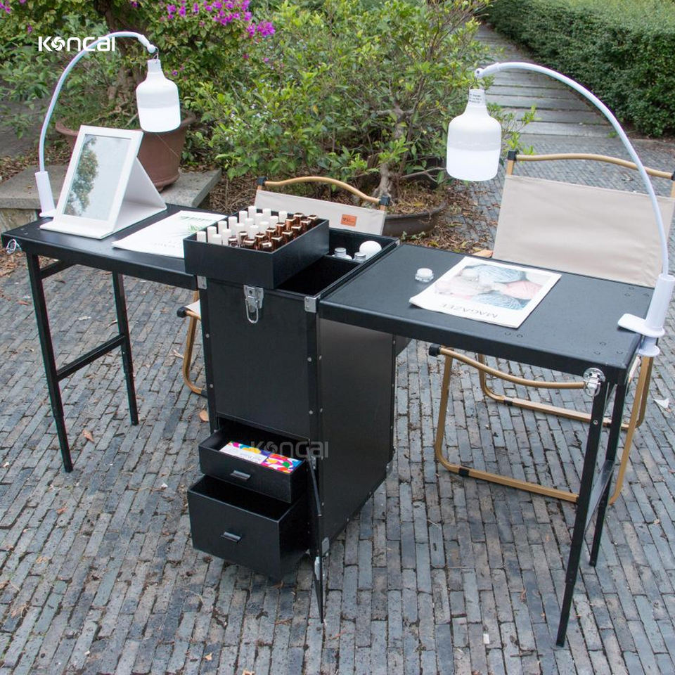 KONCAI-Table à Double Ongles Multifonctionnelle, Table de Manucure Roulante, Rangement, Valise de Maquillage