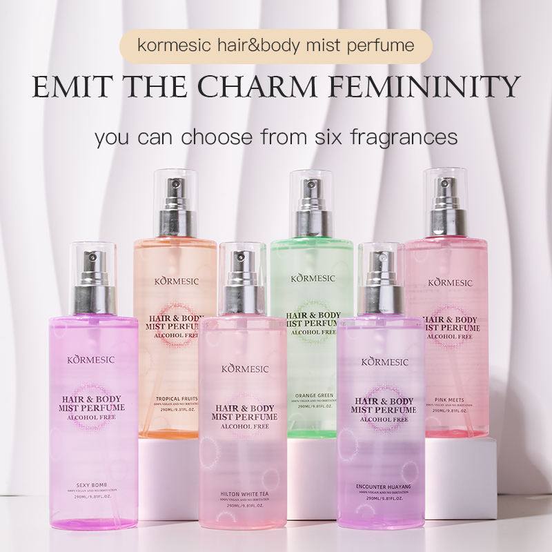 KORMESIC – Brume corporelle 290 ml personnalisée en marque blanche, OEM, vente en gros – Spray longue durée pour cheveux et corps