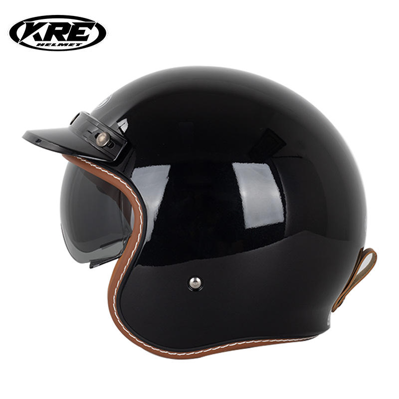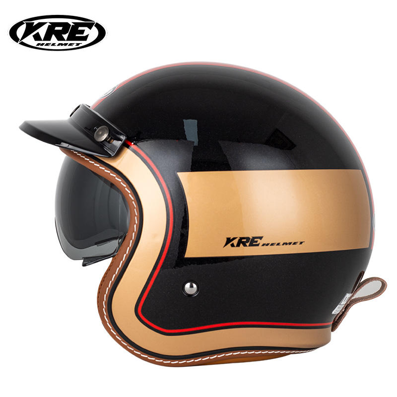 KRE Helmets KT67 Vintage 3/4 Face Open Face Casque de moto avec pare-soleil DOT Approuvé Moto Casco Condition Nouveau