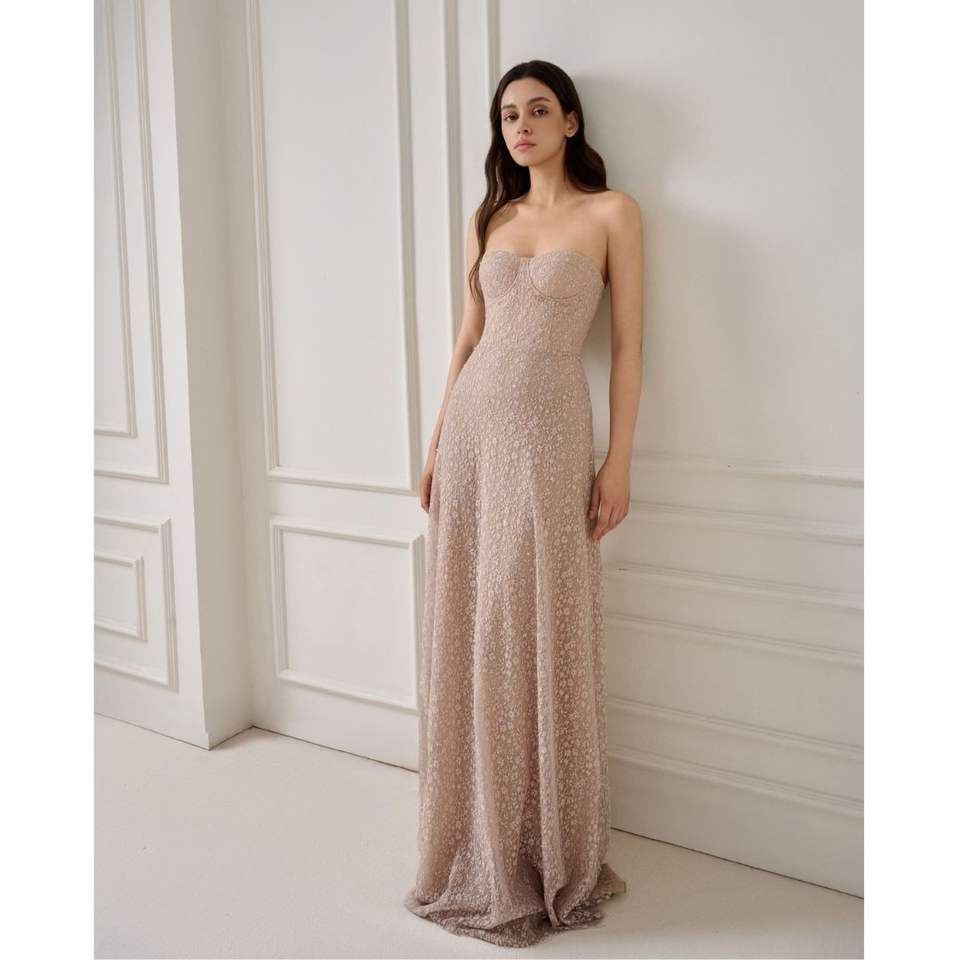 KRIXI EMB Women's Elegant A-Line Dress Aurora Lace Long Dress Strapless Sweet Fashion Clothing Three Fabric Layers High Quality