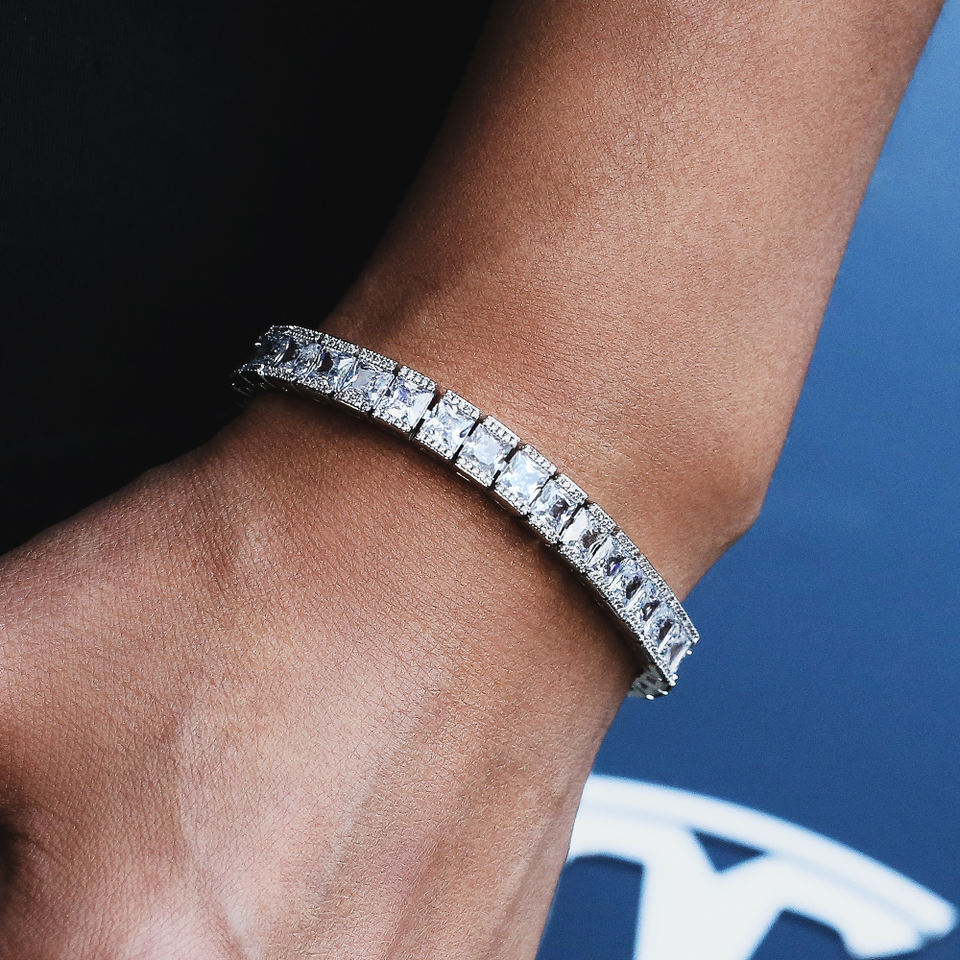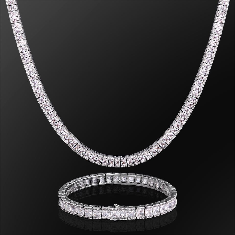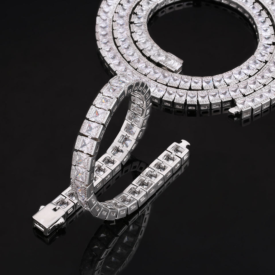 Collier Tennis Hip-Hop pour Homme KRKC 7mm, Plaqué PVD, Coupe Princesse, Diamant Faux Baguette de Laboratoire, Chaîne Tennis Hip-hop Iced Out AAAAA CZ