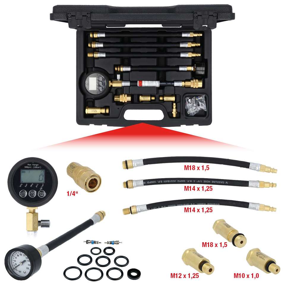 KS TOOLS Jeu de test de pression de compression numérique pour moteurs à essence, 10 pcs