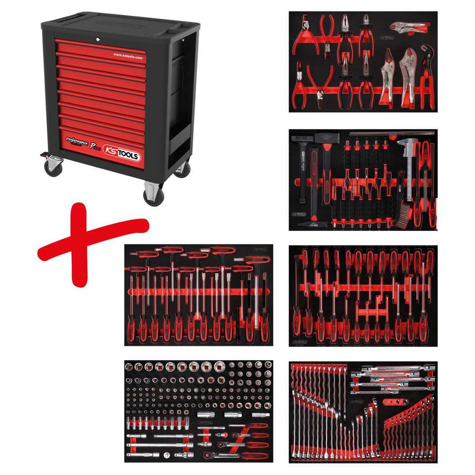KS TOOLS Performanceplus chariot à outils d'atelier P15 avec 271 outils pour 6 tiroirs