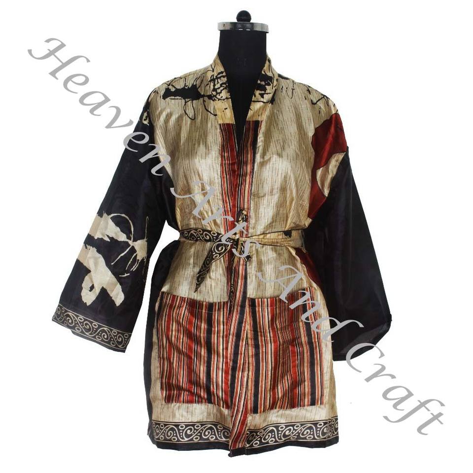 KS006 Bohemian Summer Vintage Sari Kimono Short Wrap Dress Sleeve Silk Robes Women Vintage Silk Sari Vintage Sari Kimono Short