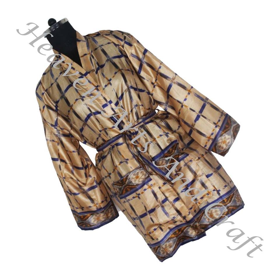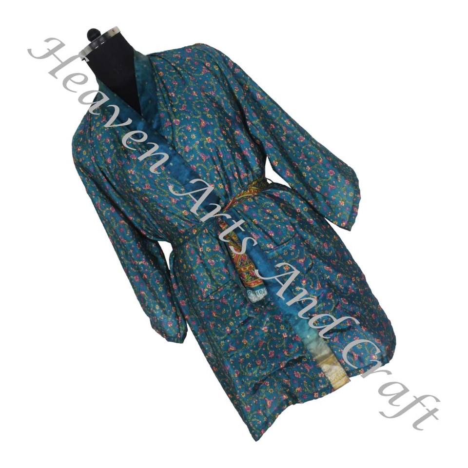 KS011 Antique Floral Silk Vintage Sari Kimono Short-Style Jacket Hot Charming Look Bohemian Style Vintage Sari Kimono Short