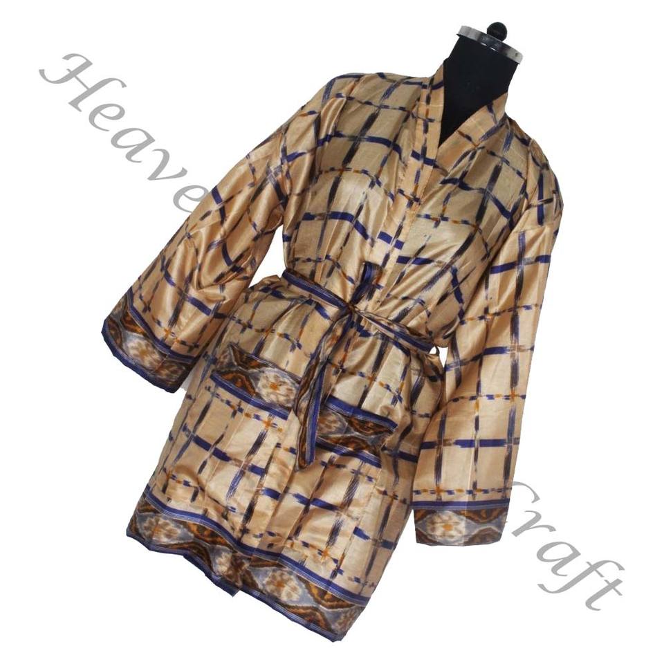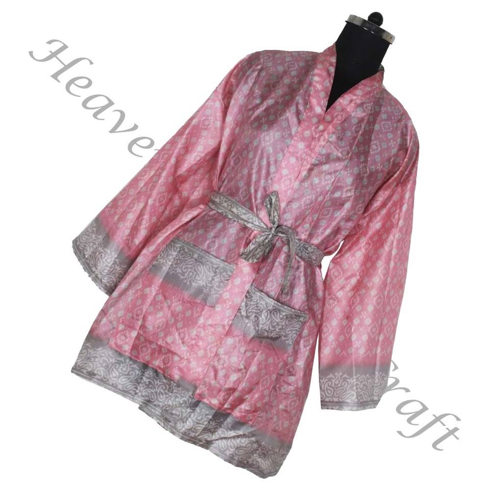 KS014 2024 Vintage Silk Sari Floral Print Short Vintage Sari Kimono Long Beach Cover up Dress Ethnic Indian Maxi Bathrobe Dress