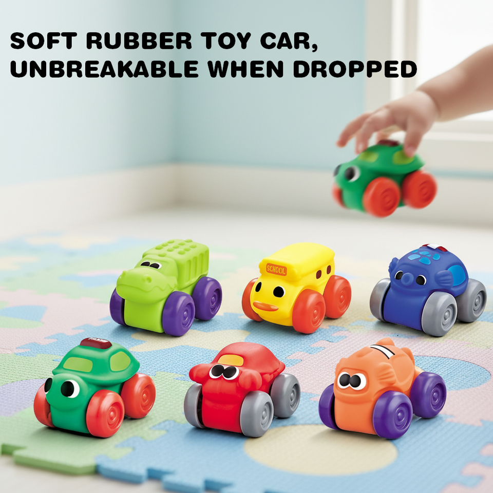 KSF Ensemble de voitures de course en caoutchouc souple à friction, animaux de dessin animé, pour enfants et bébés, jouets de jeu pour nourrissons