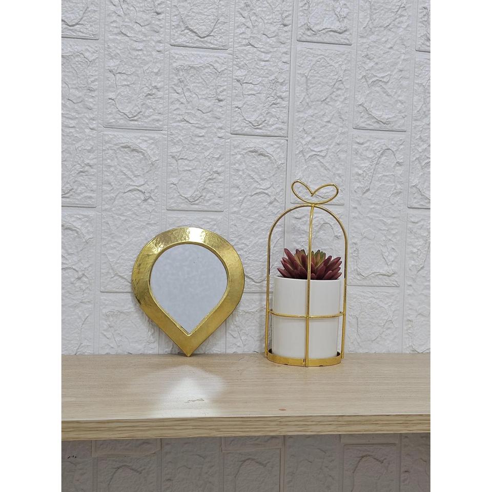 Miroir mural de coiffeuse KSN KSN-130725-04, style Art déco marocain, petit miroir en fer en forme de cœur, décoration d'anniversaire, design goutte d'eau, fabriqué en Inde
