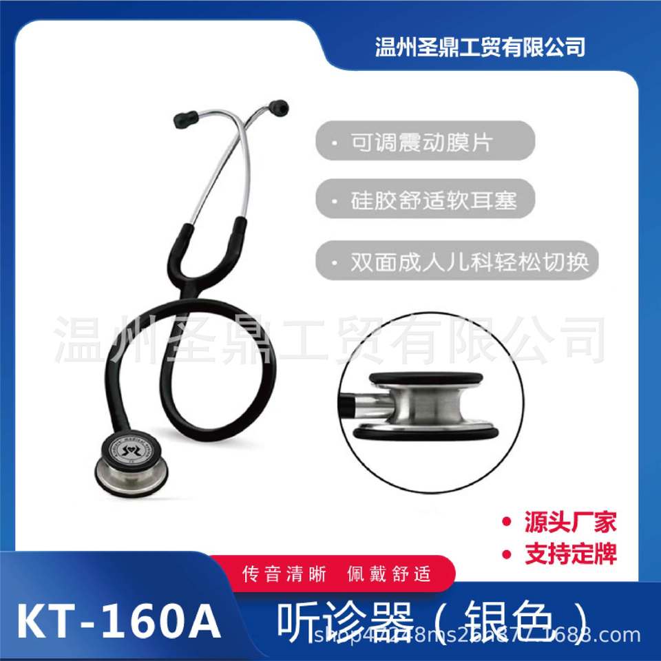 Stéthoscope à double tête intégré KT-160A, modèle d'exportation en acier inoxydable argenté avec crochet d'oreille
