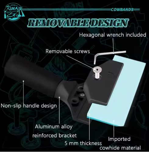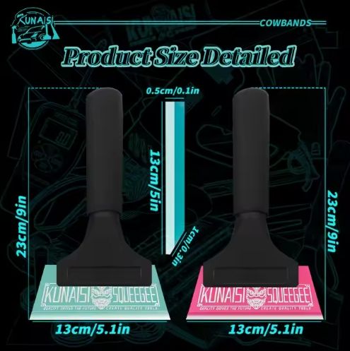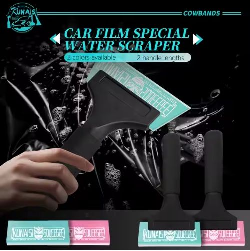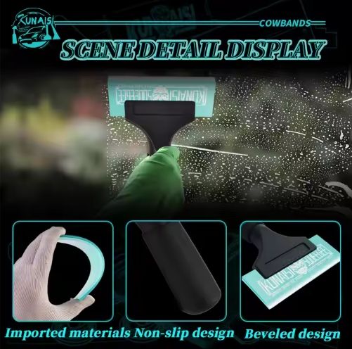 KUNAISI Outils de nettoyage de voiture Raclette à manche en aluminium et grattoir en TPU Film de fenêtre en caoutchouc et outil de teinte