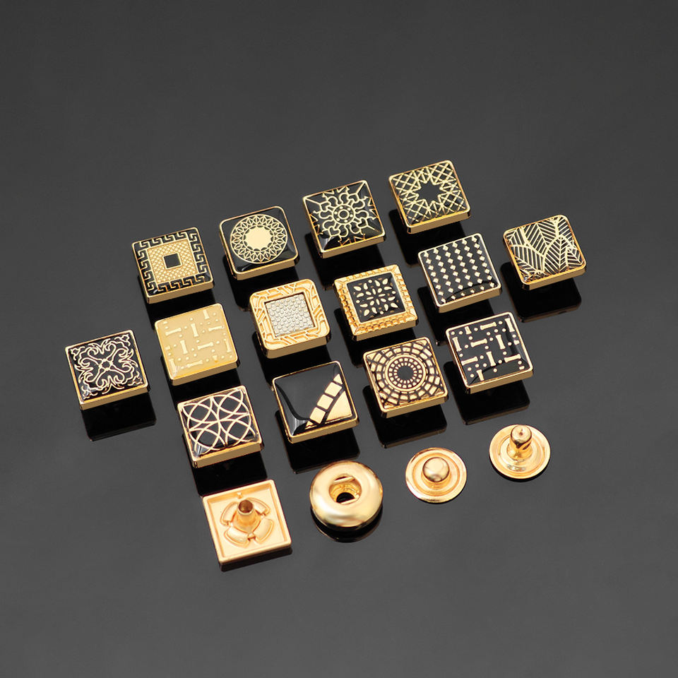 KUNSHUO Boutons à pression en métal écologiques avec logo personnalisé pour vêtements arabes Thobe pour hommes-Motifs carrés et rectangulaires en alliage de zinc