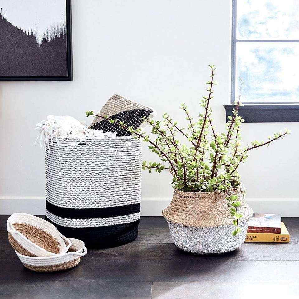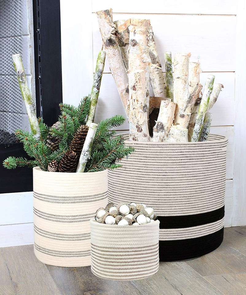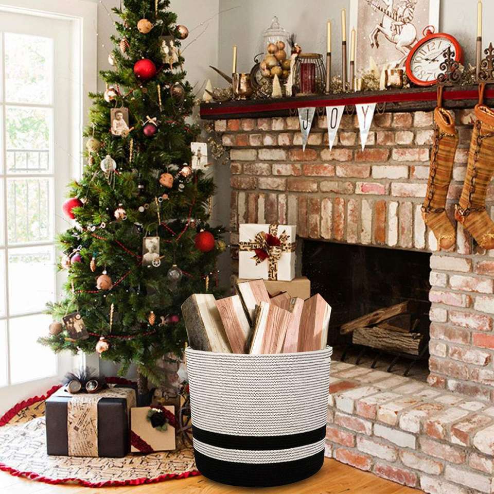 Panier à linge pliable KUYUE en corde de coton pour vêtements, couvertures et jouets