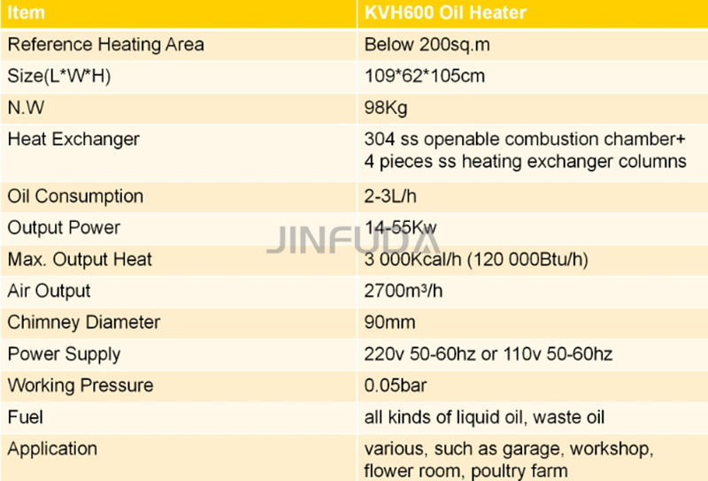 KVH600 Chambre Garage Chauffage Volets de fenêtre mobiles Chauffage à mazout à air chaud