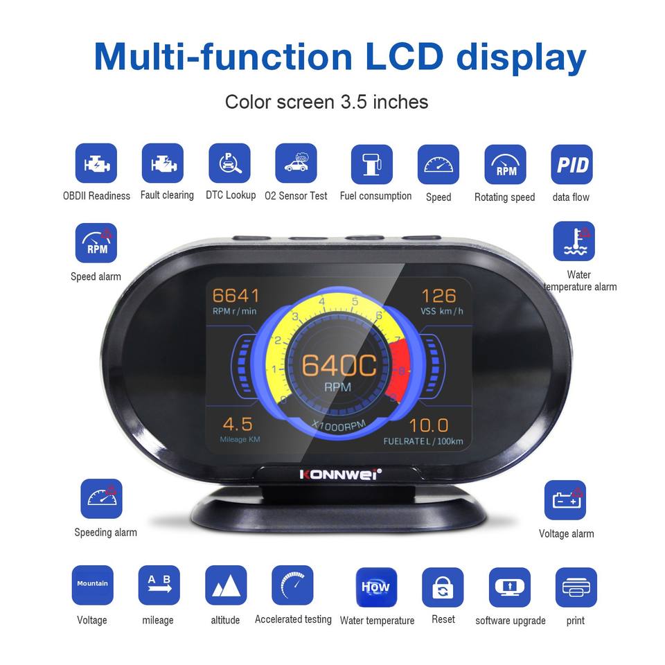 Analyseur de diagnostic automobile KW206 avec affichage tête haute, compatible ELM327, analyseur de moteur ABS, garantie 1 an, compatible Amazon, eBay, AliExpress, WISH