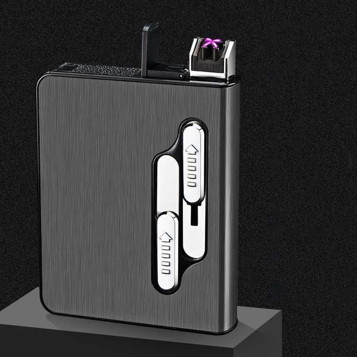 KY Luxe Rectangulaire Petit 12pcs Automatique Électronique En Alliage De Zinc Argent Cigarette Cas avec Usb Briquet