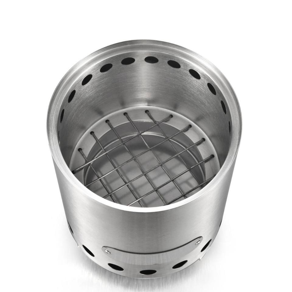 Brasero en acier inoxydable KZ-X130, 13 cm, portable, pour extérieur, poêle à bois, sans fumée, design moderne, couleur argent