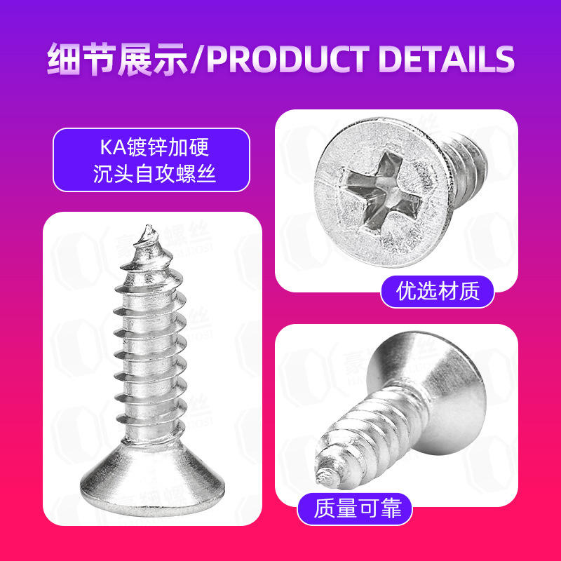 Vis autotaraudeuses galvanisées et trempées, tête cruciforme, pointe effilée, M1.2/M1.4/M2.2