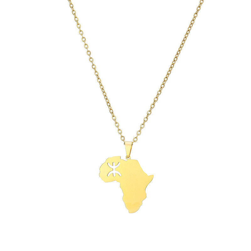 Bijoux Kabyle Amazigh Carte de l'Afrique en acier inoxydable Symbole des Berbères Pendentif Collier