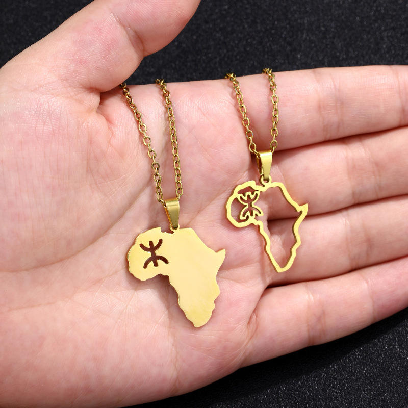Bijoux kabyle amazigh Carte d'Afrique Collier pendentif symbole berbère en acier inoxydable Un sac d'opp, puis carton