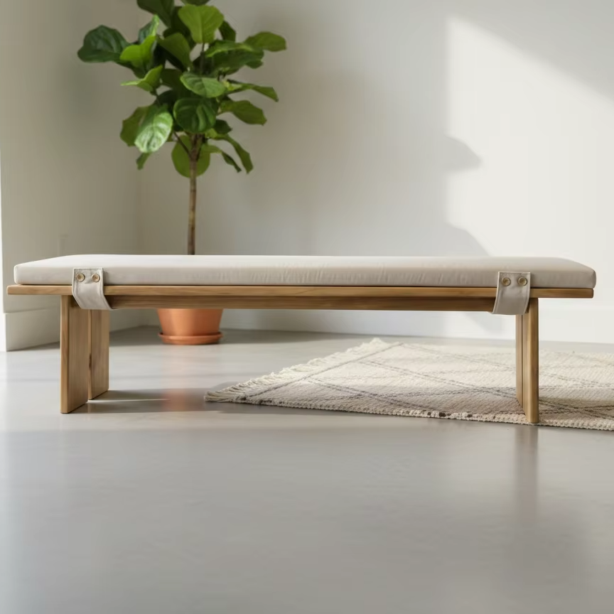 Banc rectangulaire en bois massif Kaede - Durable et facile à nettoyer pour une utilisation en extérieur dans les appartements ou les hôtels